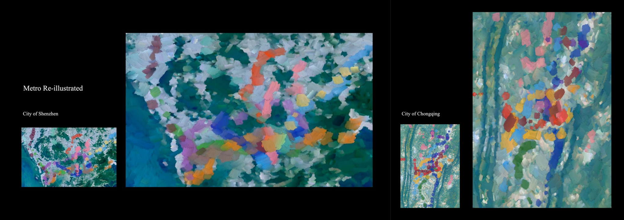Finally, the incremental generation of strokes on the virtual canvas exhibits natural characteristics of oil painting and the dynamic development of the city metro system.